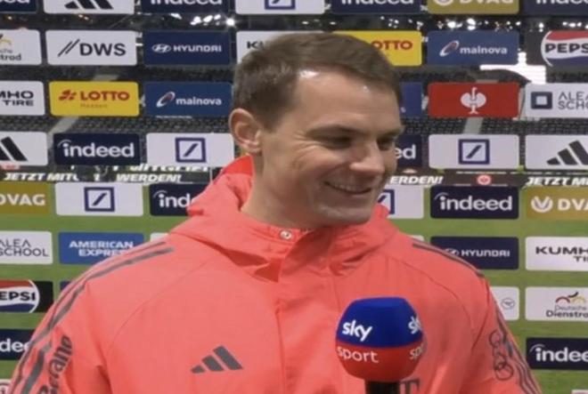 北京时间10月5日,德甲第6轮,法兰克福0-3拜仁慕尼黑。赛后,拜仁慕尼黑守门员诺伊尔接受了采访。